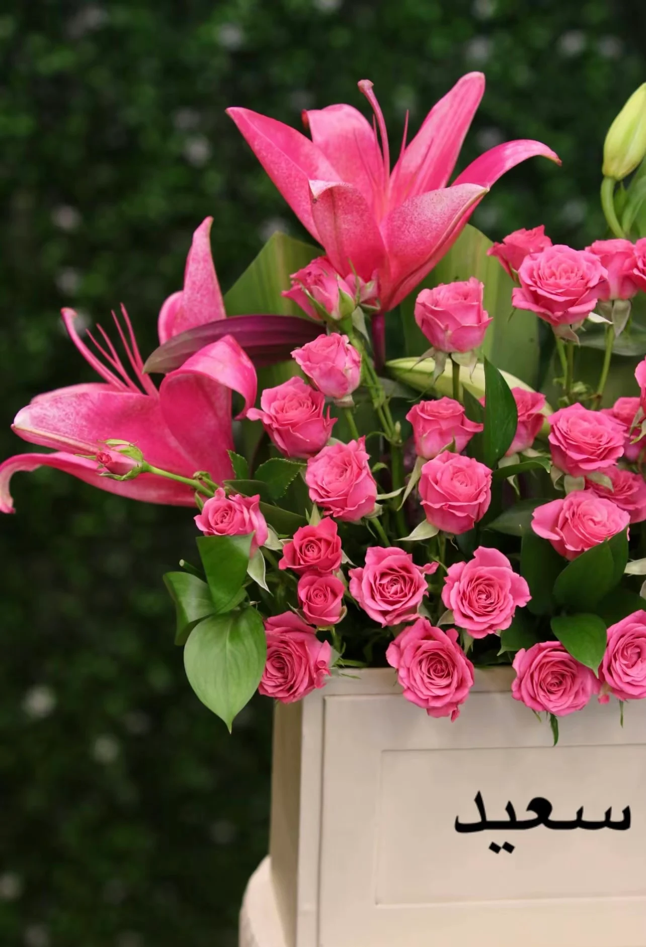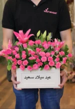 ملاحظة: في حال عدم توفر أحد العناصر المكونة للباقة، سيتم استبدال العنصر بنوع مقارب بما يتناسب مع الشكل النهائي و المبلغ المدفوع. ملاحظة: في حال عدم توفر أحد العناصر المكونة للباقة، سيتم استبدال العنصر بنوع مقارب بما يتناسب مع الشكل النهائي و المبلغ المدفوع.احتفال مميز – باقة ورد مع كيكة في إطار أكريليك