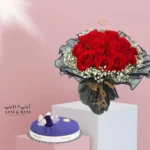 • باقة ورد جوري فاخرة: ورود حمراء نضرة مغلفة باللون الأسود الملكي لتعبر عن الرقي والاهتمام.