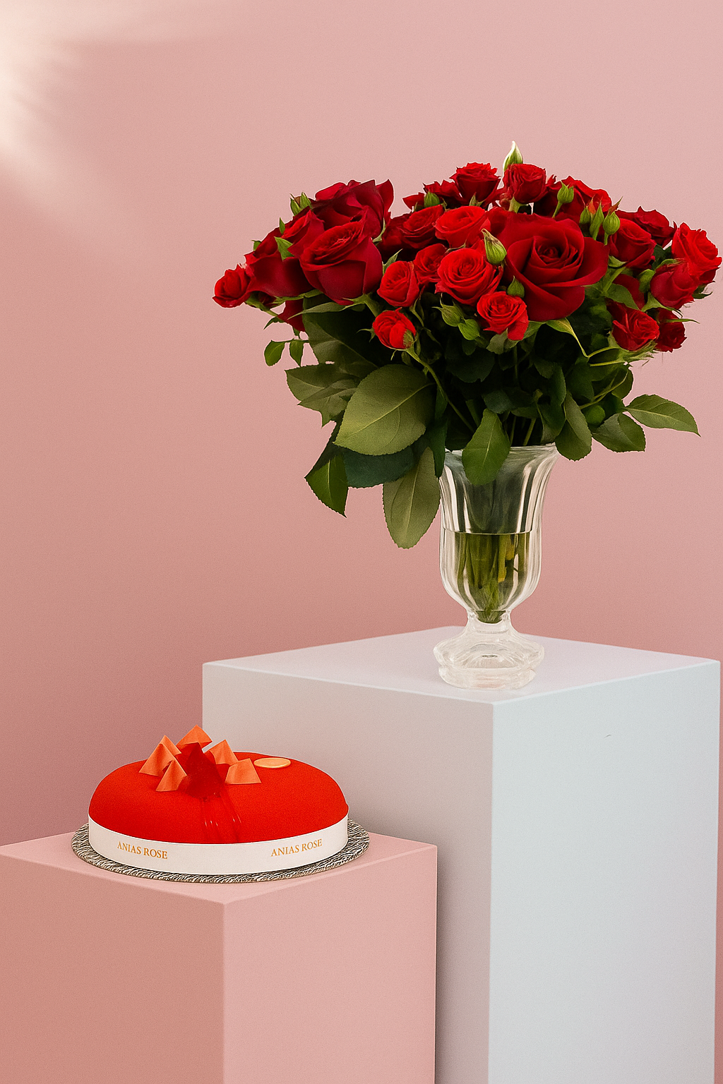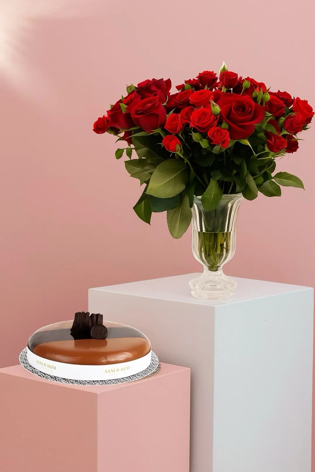 وردة حمراء مع كيكة أني داني الصغيرة