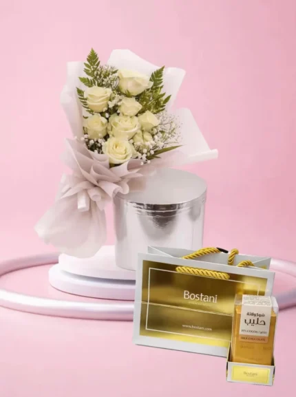 باقة أناقة بيضاء / مع شوكلاته باتشي او فيريرو